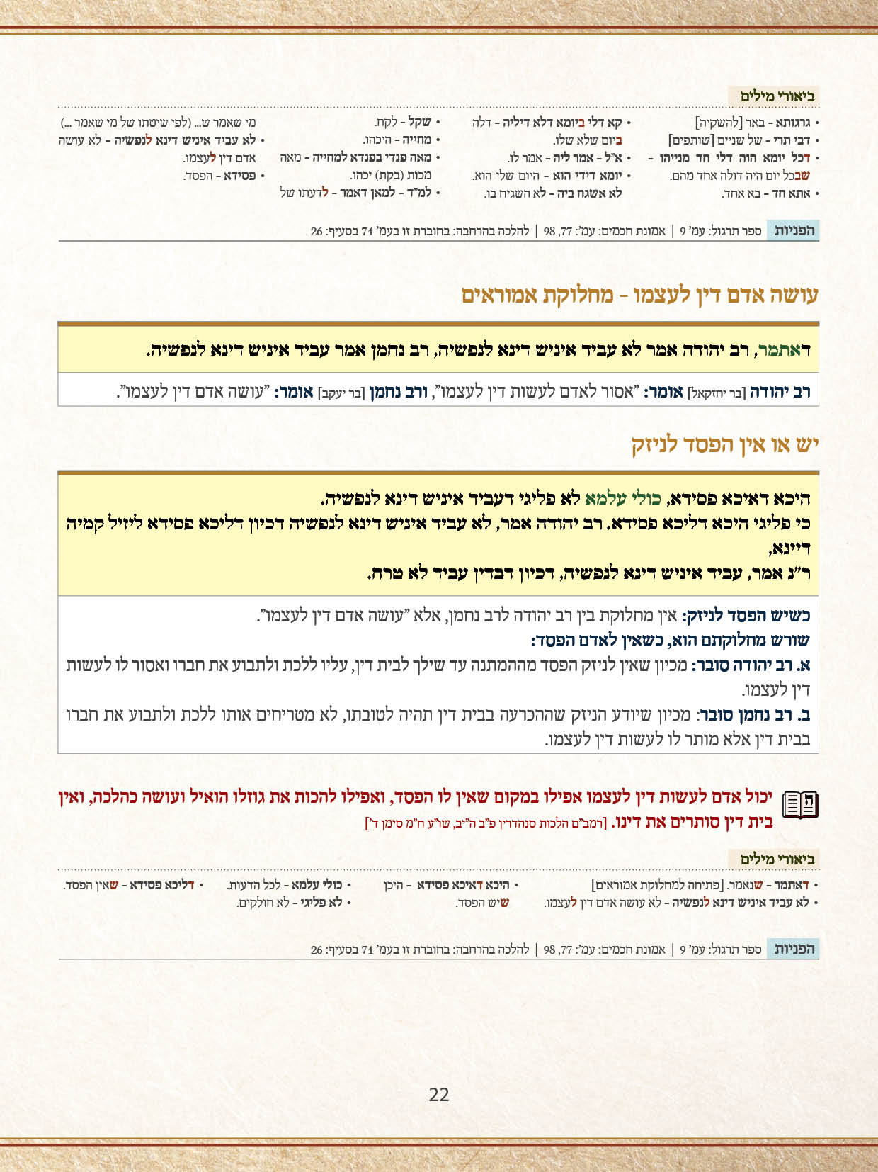 - בסוף כל מקטע לימוד, נמצא ביאורי מילים לאותו מקטע.